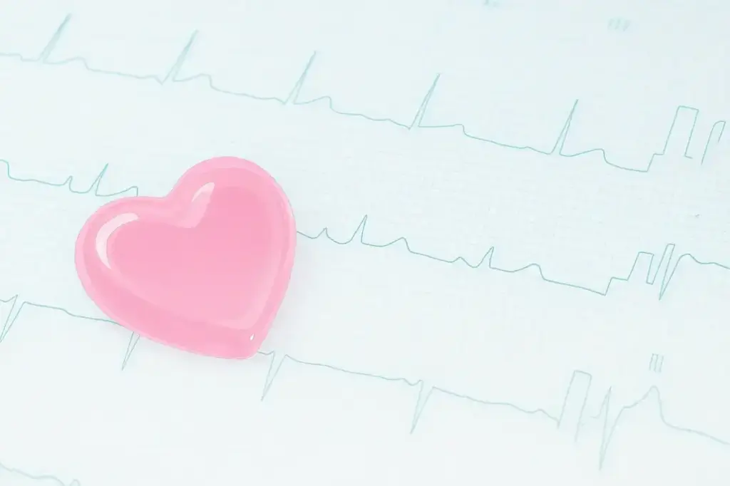 ハートの模型が心電図の上に置いてあります。