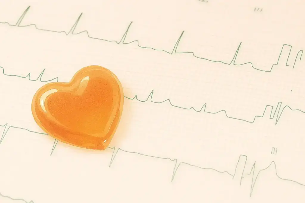 ハートの模型が心電図上に置いてあります。